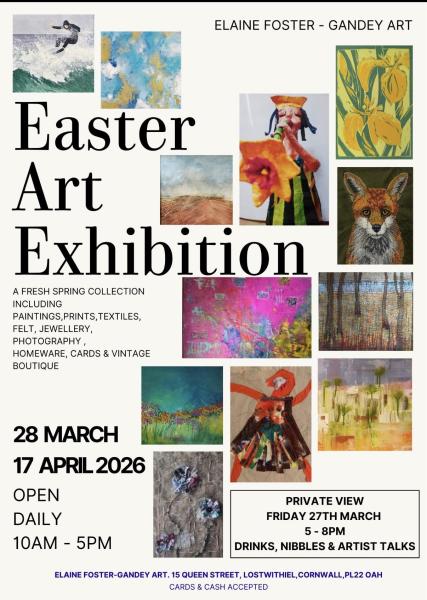 The exhibition opens with a Private View on Friday 27th March, offering visitors the opportunity to meet the artists and celebrate the launch of the show. Over the past year, Elaine Foster-Gandey Art has established itself as a growing destination within Cornwall’s arts scene, known for its vibrant exhibitions and welcoming, inclusive ethos.